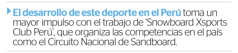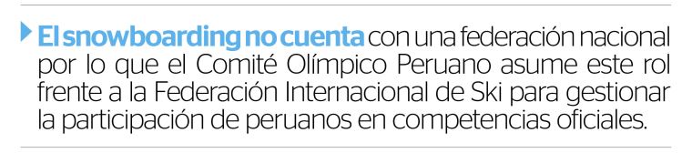 El snowboard es una disciplina olímpica de los deportes de invierno que se practica en las grandes montañas de nieve y parques de esquí en los Alpes, países nórdicos, Patagonia y Alaska; por ello, hablar de esta disciplina en el Perú es algo fuera de lo común.