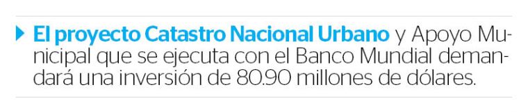 En el primer proyecto se catastrarán las 10 principales ciudades del país, mientras que por intermedio del segundo se efectuará esta labor en las localidades pequeñas del territorio patrio que también requieren de un catastro.