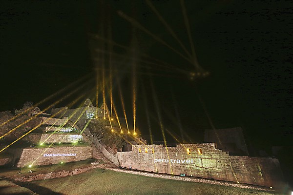 Los muros incas se volvieron posmodernos. Los pisos y la explanada de la llacta de Machu Picchu proyectaron multicolores luces láser y las piedras poligonales arrullaron a un Babel de brazos abiertos: