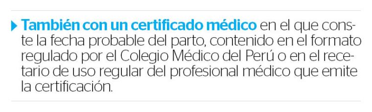 Además, en aplicación de esta norma, advierte que para el goce de este derecho solo se requiere acreditar la condición de gestante mediante alguno de los documentos que especifica el artículo 4 del Reglamento de la Ley Nº 26644,
