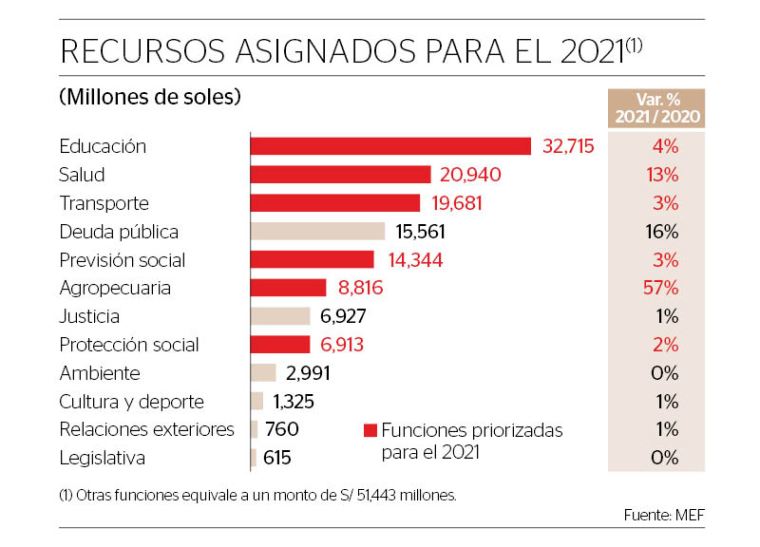 En el presupuesto del Sector Público para el Año Fiscal 2021 se priorizarán los sectores de Salud, Educación y Agricultura, y se fortalecerán los esfuerzos para erradicar la pobreza, anunció la presidenta del Consejo de Ministros, Violeta Bermúdez.
