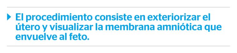La operación consiste en exteriorizar el útero para hacerle un corte y visualizar la membrana amniótica (la última capa que envuelve al feto).