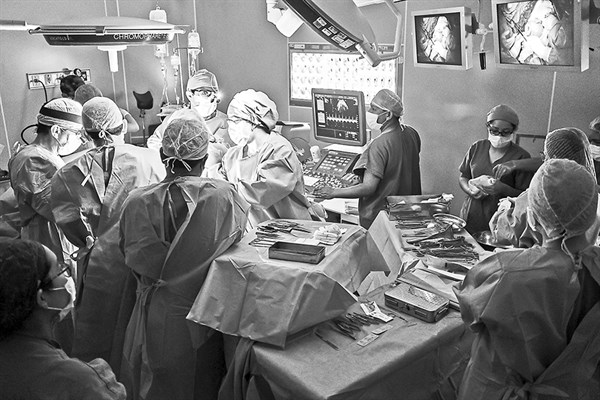 En el quirófano adonde llegaron madre e hija trabajó un equipo multidisciplinario de 15 especialistas: un cirujano fetal y su asistente; un médico materno-fetal; un neurocirujano y su asistente; tres anestesiólogos; dos enfermeras instrumentistas y una circulante; un ingeniero biomédico; dos técnicos en enfermería y un médico residente que opera el ecógrafo.