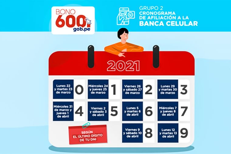 Para registrarse, el responsable del cobro en el hogar (según el padrón del Midis) deberá tener una línea celular a su nombre y seguir la fecha establecida según el último dígito de su DNI: