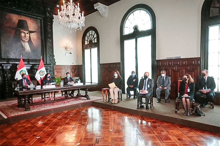 La jefa del Gabinete y el ministro de Salud, Óscar Ugarte, recibieron en Palacio de Gobierno el informe técnico del grupo de trabajo conformado por la PCM, para establecer los criterios que permitan actualizar la cifra de fallecidos por la covid-19 en el país.