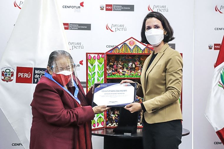 La premiación de la maestra artesana la realizó la titular del Mincetur, Claudia Cornejo, quien resaltó la labor de la maestra Genoveva Núñez por su aporte al desarrollo de la artesanía en el país, así como en la transmisión de conocimientos a las nuevas generaciones de hombres y mujeres que se dedican a esta actividad milenaria