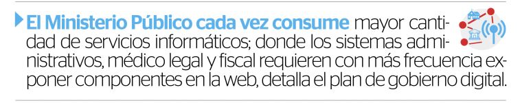En ese contexto, el Ministerio Público pretende fortalecer la institución, utilizando como herramienta estratégica los recursos tecnológicos, y de esa forma integrar los diferentes procesos fiscales, médico-legales y administrativos, que contribuyan a la celeridad en la gestión interna de la entidad y que se refleje en la atención oportuna a la ciudadanía.