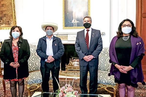 En este encuentro participó también la jefa del Gabinete Ministerial, Violeta Bermúdez, y la primera vicepresidenta electa, Dina Boluarte.