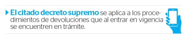El citado decreto supremo se aplica a los procedimientos de devoluciones que al entrar en vigencia se encuentren en trámite.