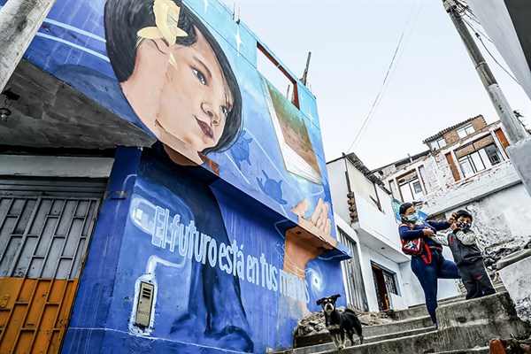 3. Leticia es el asentamiento humano del San Cristóbal, que mira al centro de la ciudad. Desde el puente Balta, la alameda Chabuca Granda, la avenida Abancay y el parque de La Muralla, ya se pueden otear las chacanas del telar gigante, que se pinta en las faldas del San Cristóbal.