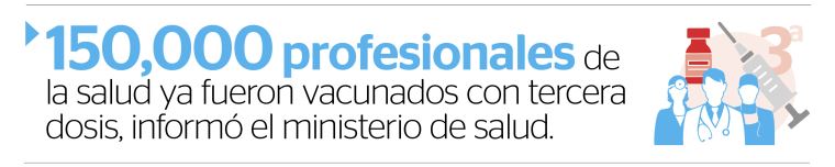 Aclaró que la prioridad es, por ahora, inocular con la tercera dosis de refuerzo de la vacuna contra el covid-19 al personal de salud, por estar mucho más expuesto al virus, así como a los mayores de 65 años y a las personas con algún grado de inmunodeficiencia.