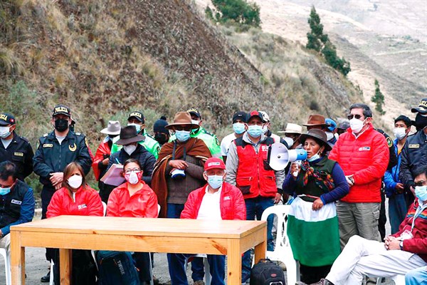 La comitiva multisectorial del Gobierno fue liderada por el ministro de Energía y Minas, Eduardo González, y por la titular de Cultura, Gisela Ortiz, quienes estuvieron acompañados por el viceministro de Minas, Jorge Chávez; la Viceministra de Transportes, Verónica Cáceres; el viceministro de Orden Interno, Óscar Rabanal, y por funcionarios de la Secretaría de Gestión Social y Diálogo de la Presidencia del Consejo de Ministros (PCM).