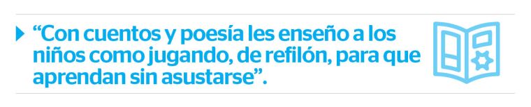 “Con cuentos y poemas les sigo enseñando a los chicos a leer como jugando, de refilón, para que no se asusten. Me hice escritora para captar su atención. A los padres les digo que, si quieren eternizarse en la memoria de sus hijos lean con ellos cinco minutos al día, aunque sea”, dice.