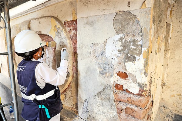 “Es una labor sumamente minuciosa y delicada. Se ha encontrado evidencia de pintura mural que podríamos datar entre 1659 y 1662, que son los años en que se inauguran las obras”, comenta el gerente del Prolima, Luis Martín Bogdanovich.