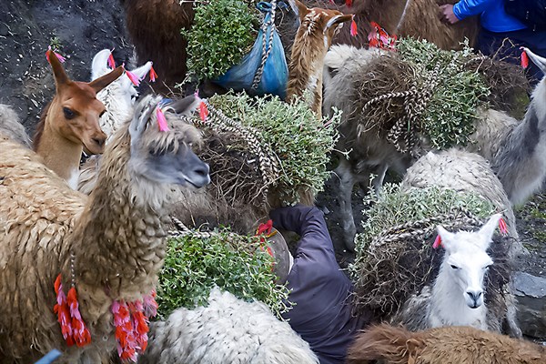 Los de Rumira avanzan por una carretera de polvo. Los de Patacancha por un senderito que bordea el río que marca el límite entre ambas localidades. Frente a frente, transportando en sus llamas o en las mantas que cruzan sus espaldas, un ‘remedio natural’ que atenuará, al menos un poquito, los males globales que alteran el clima y afectan al medioambiente.