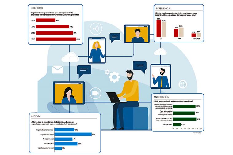 Al respecto, los empleados buscan una conexión y apoyo sin precedentes para sus lugares de trabajo por parte de sus empleadores. Este desafío implica, entre otras cosas, mejorar digitalmente los procesos de reclutamiento, las capacitaciones e inducciones, así como implementar mejores herramientas para el desarrollo de sus actividades.