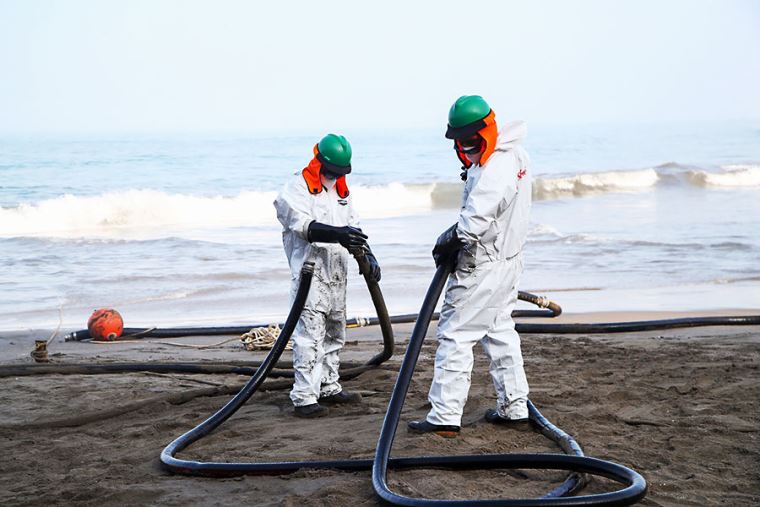 Derrame de petróleo. Acciones de limpieza en zonas afectadas del litoral.