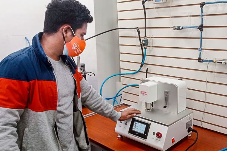 Centro de Caracterización de Materiales de la línea de dispositivos médicos del a PUCP adquirió un testeador para medir la respirabilidad de las mascarillas.