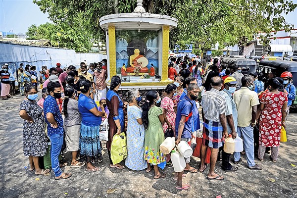 Sri Lanka. Población hace largas filas para adquirir kerosene ante la escasez de combustibles.