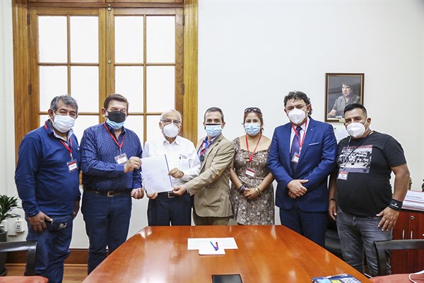 Los acuerdos fueron consignados en un acta que suscribieron el vocero nacional de la Federación de Autos Colectivos del Perú, Wincler Delgado, y representantes del gremio que llegaron a la sede de la Presidencia del Consejo de Ministros. Los acuerdos alcanzados representan un avance en el proceso de diálogo que impulsa el Gobierno, a fin de atender las demandas.