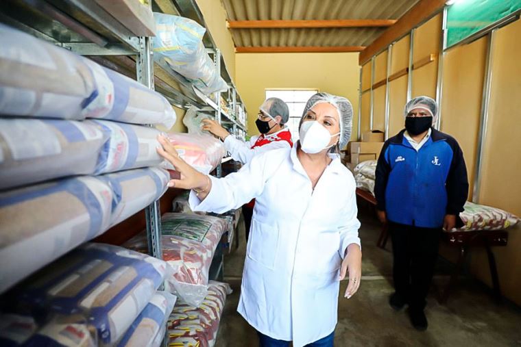 La ministra Boluarte verificó el almacenamiento de los alimentos entregados previamente por el programa y supervisó la preparación y servido de los mismos. Cabe recordar que, Qali Warma atiende a escolares de instituciones educativas de nivel inicial y primaria, así como de secundaria solo en las comunidades nativas y de la modalidad jornada escolar completa (JEC) y FAD.