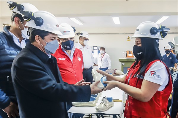 Ante representantes de los micro y pequeños empresarios del calzado y cuero de La Libertad, el presidente Castillo anunció ayer la confección de 5 millones de calzados para ser distribuidos entre los escolares de todo el país. “Anunciamos que a la brevedad posible se hará efectiva la confección de 5 millones de zapatos para los estudiantes. Con quién más se puede hacer si no es con ustedes”, indicó el Jefe del Estado en una reunión en el Cite de cuero y calzado de Trujillo. Durante el encuentro, destacó el empuje que tuvo este sector para salir adelante, a pesar de la pandemia, y los instó a que junto con sus autoridades hagan una sola fuerza para combatir el flagelo de la inseguridad ciudadana en la región. Saludó además la decisión del gobierno regional de La Libertad de adquirir un terreno para la construcción de un parque industrial, y comprometió al Ministerio de la Producción a colaborar con la elaboración del expediente técnico.