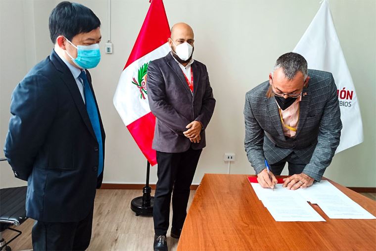 El gerente general de la ARCC, Ángelo Lindo, encabezó el acto simbólico en compañía de Michael Penny, representante del equipo de implementación del Reino Unido (UKDT), y Huang Huayi, por parte del Consorcio S&F.