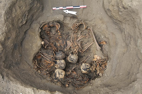 La tumba más inusual pertenece al montículo I: son cinco mujeres “sentadas” cabeza con cabeza, haciendo una especie de círculo. Los análisis determinarán su significado.
