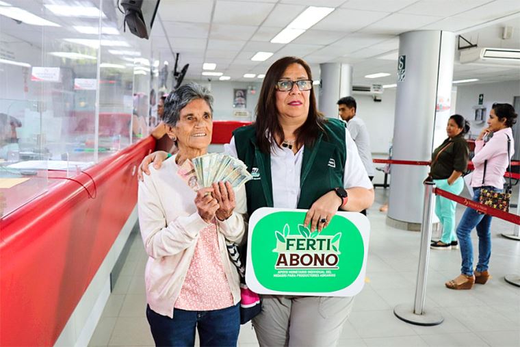 Precisamente, Paredes del Castillo acompañó hasta una agencia del Banco de la Nación a Flora Reátegui de Pérez y a Wilson Vásquez Díaz, dos de los productores agrarios beneficiados con este bono extraordinario que se encuentran inscritos en el Padrón de Productores Agrarios (PPA), ambos cobraron 3,750 soles y 2,600 soles, respectivamente. Dinero que podrán utilizar para adquirir el fertilizante que requieran.