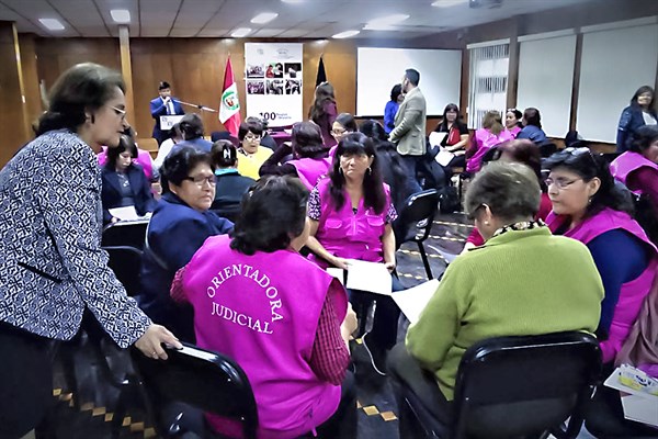 A la fecha, aquella comisión que preside la jueza suprema Janet Tello Gilardi trabaja con cerca de 900 orientadoras judiciales distribuidas en 16 cortes superiores, esperando en el presente año aumentar su número para que brinden apoyo en otras circunscripciones de la judicatura. Esto teniendo en cuenta que el desafío es que existan en todas las 35 cortes superiores del país.