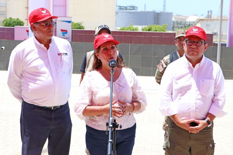 En la visita técnica a la refinería de Talara, la presidenta estuvo acompañada del presidente del Consejo de Ministros, Alberto Otárola, y el ministro de Energía y Minas, Óscar Vera.