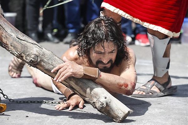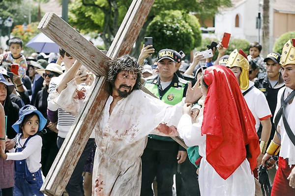 La representación de la pasión de Cristo, como también se conoce al camino al monte Calvario, es una de las celebraciones más importantes de la Semana Santa en Ayacucho.