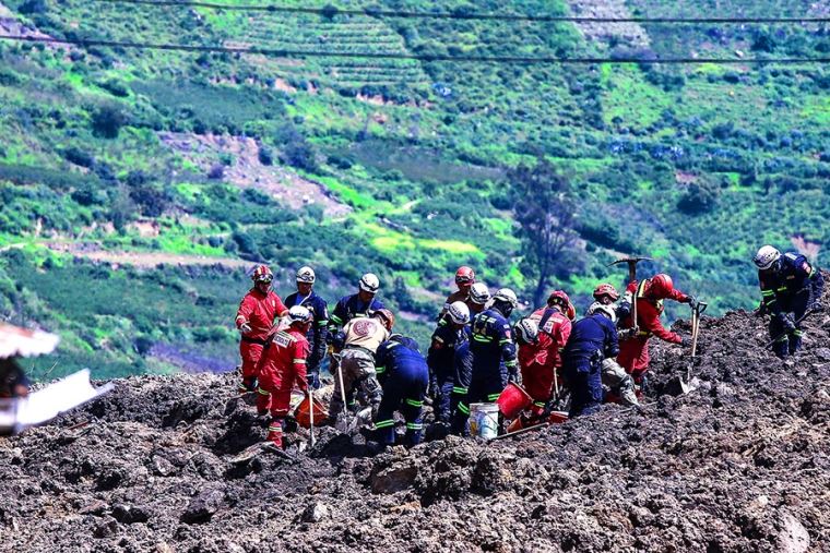 En seguida, explicó que no se puede poner en funcionamiento todas las máquinas en el área afectada porque podría ocasionar una desestabilización del terreno; por lo que se tiene que ir con prudencia, garantizando la seguridad de la población.