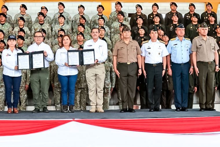 Durante su participación en la firma del convenio entre los ministerios de Defensa y de Salud para brindar atención en el Seguro Integral de Salud (SIS) a quienes realizan el Servicio Militar Voluntario, la Mandataria destacó el papel que los miembros y tropas de los institutos armados realizan en el país.