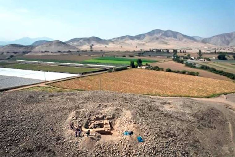 “Estamos trabajando en este lugar desde finales del 2022 y las excavaciones empezaron en enero de este año. Se trata de un sitio conformado por un montículo central elevado a gran altura y dos montículos laterales extendidos o alargados que, en su conjunto, adoptan la forma de una ‘U’ y que albergan a una plaza central que es el patrón típico de los llamados ‘Templos en U’ de la Costa Central peruana”, comentó Van Dalen Luna.