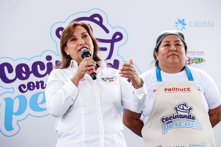 Al asistir al lanzamiento de Cocinando con Pescado del Programa Nacional A Comer Pescado, en Villa El Salvador, la mandataria sostuvo que corresponde a todos -Estado, ciudadanía y sector privado- empujar hacia adelante el carro llamado Perú.