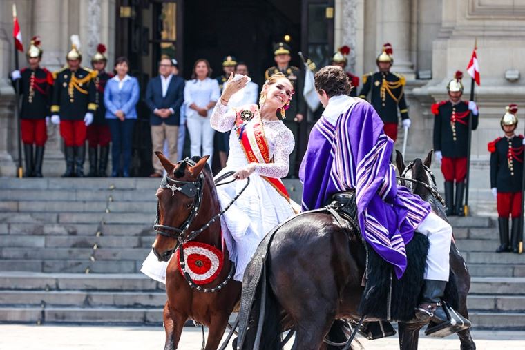 De igual manera, se entonaron marineras norteñas e hicieron su ingreso, al patio de honor del palacio de Gobierno, caballos de paso peruanos que deleitaron a los presentes con sus elegantes movimientos.
