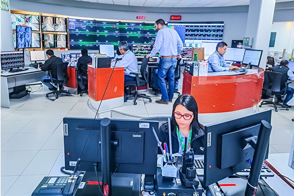 El Puesto Central de Operaciones en Villa El Salvador es, a la vez, el corazón y el cerebro de toda la operación de la Línea 1 del Metro de Lima. En las pantallas negras, los operadores visualizan el recorrido en tiempo real de los trenes y los andenes, desde Bayóvar hasta Villa El Salvador. Cada tren en movimiento se representa con el color verde y uno detenido es de color rojo.