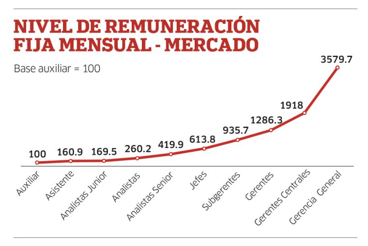 Según el estudio, en el Perú hay una marcada diferencia en las remuneraciones anuales y beneficios asociados a puestos de liderazgo, específicamente en los roles de gerentes generales y centrales, según el sector empresarial y/o los ingresos de la empresa. Así, las empresas que perciben ingresos mayores a 300 millones de dólares pagan anualmente a sus gerentes generales más del doble que una empresa con ingresos menores a 50 millones de dólares.