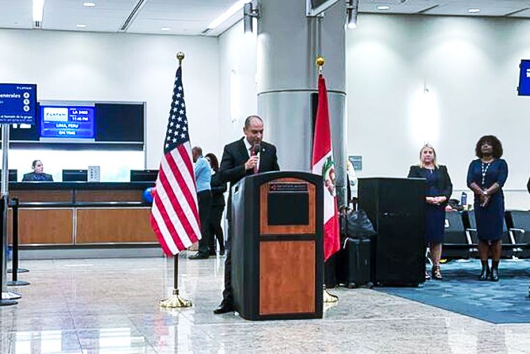 En la ceremonia participó Giancarlo León, cónsul general del Perú en la ciudad. Estuvo acompañado de la vicepresidenta del Grupo Latam Airlines para Norteamérica, el Caribe y Asia, Paola Penarete; el director de Ventas Internacionales de Delta Airlines, Athar Khan; y la directora de Desarrollo de Servicios Aéreos del Aeropuerto Internacional de Atlanta, Rebecca Francosky.
