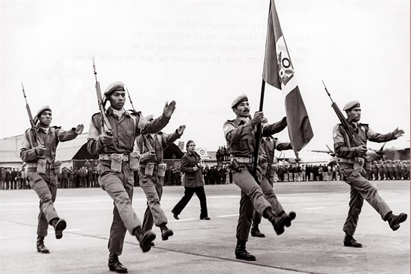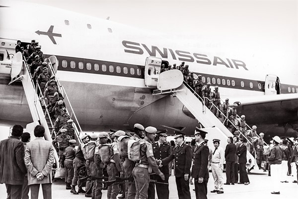 A las 10:45 de la mañana del jueves 15 de noviembre de 1973, el primer contingente del Ejército Peruano, denominado Los Precursores, partió al Medio Oriente.