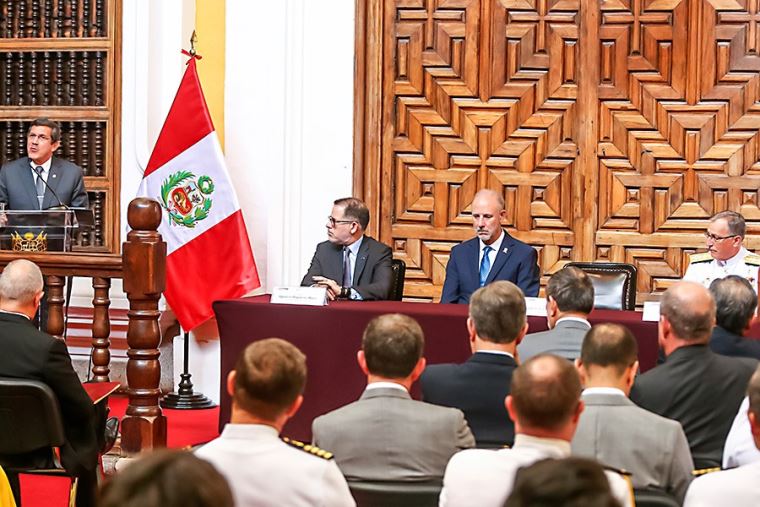 A través de los jefes de misión de los Estados miembros de la OMI acreditados en nuestro país y sus respectivos agregados navales, reunidos en la Cancillería, el titular del sector Defensa invitó a los países miembros de la organización internacional a apoyar la candidatura del Perú, reafirmando que nuestro país seguirá contribuyendo en la mejora de la seguridad marítima y la preservación ambiental.