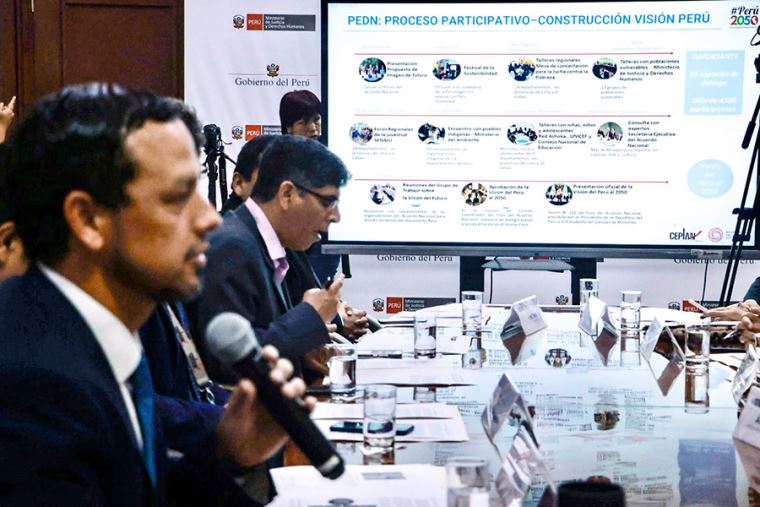 Esta conferencia contó con la participación de Luigino Pilotto, viceministro de Derechos Humanos; Edgardo Rodríguez, director General de Derechos Humanos y Ángel Gonzáles, director de Políticas y Gestión de Derechos Humanos, así como funcionarios del Ceplan, Giofianni Peirano, presidente del Consejo Directivo; Jordy Vílchez, director Nacional de Prospectiva y Estudios Estratégicos, y Hans Stehli, analista de Temas Económicos.