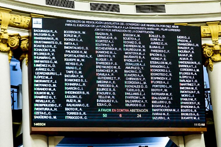 La resolución legislativa que recomendaba la inhabilitación obtuvo 51 votos a favor, 6 en contra y 24 abstenciones. Se requería 67 votos a favor.