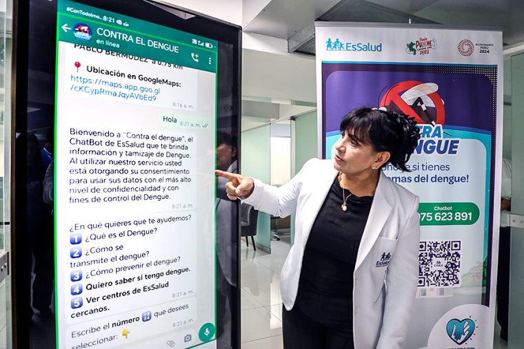 “El dengue es un problema de salud pública nacional y no debe haber distinción en las herramientas que se puede utilizar para combatir la enfermedad; por ello, ChatBot está abierto para todo peruano, 24 por 7; es decir, todos los días”, detalló la titular de EsSalud.