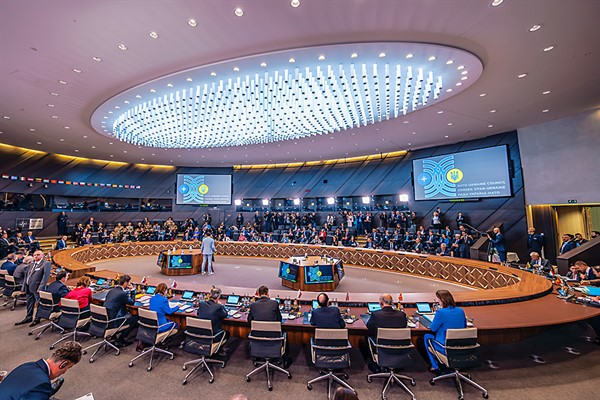 Los ministros participaron en una ceremonia para celebrar la firma del Tratado de Washington, el 4 de abril de 1949, por parte de los 12 miembros fundacionales de la Alianza, que actualmente ascienden a 32 con las recientes incorporaciones de Finlandia y Suecia a causa de la conducta agresiva de Rusia.