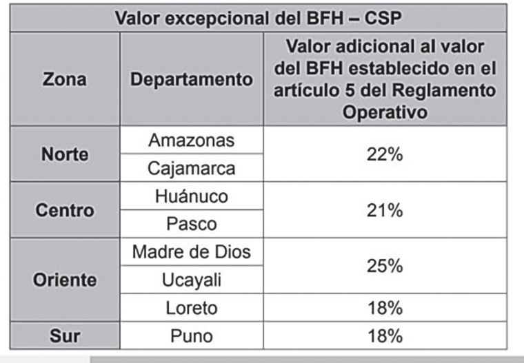 En esta convocatoria, el valor del Bono Familiar Habitacional es de 6 unidades impositivas tributarias (30 900 soles), excepto para ciertos departamentos donde se establecen porcentajes adicionales a este valor, como se indica en un cuadro adjunto.