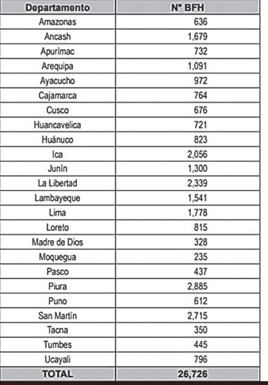 La distribución de los 26 726 Bonos Familiares Habitacionales se detalla de la siguiente manera: