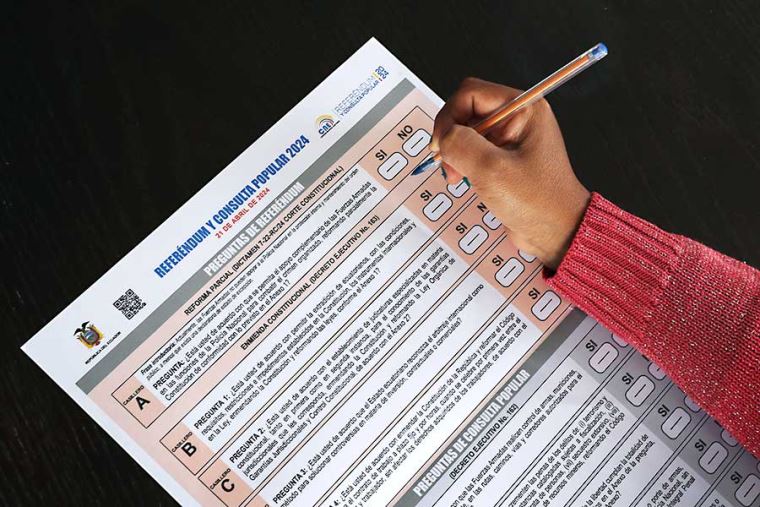 En aquellos momentos, el presidente Daniel Noboa gozaba de una aceptación de gran parte de la sociedad ecuatoriana, excepto la fuerte oposición política de los seguidores del expresidente Rafael Correa y los movimientos indígenas en la Asamblea Nacional. La encuestadora CB Consultora le otorgaba un 62.5% de apoyo, el más alto de un mandatario en Sudamérica. Pocos podrían dudar del apoyo mayoritario que podría dar la población a las iniciativas legales propuestas que mañana se pondrán en manos de los ciudadanos.