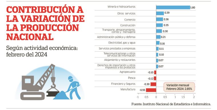 Esta evolución positiva se debe principalmente a la mayor producción de los sectores minero y de construcción.